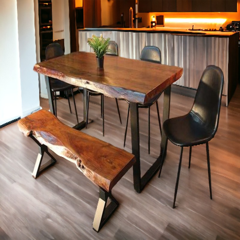 Uniquely Raw Wood Edges : With our raw wood edge dining table, embrace the beauty of imperfection. Every table is a unique piece of art since the edges of the wood have not been altered, showcasing the natural curves, knots, and textures.