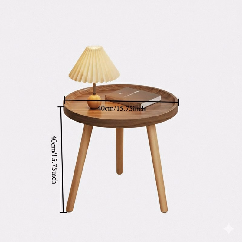 The table has an approximate diameter of 40 cm, making it ideal for compact spaces such as apartments and bedrooms.