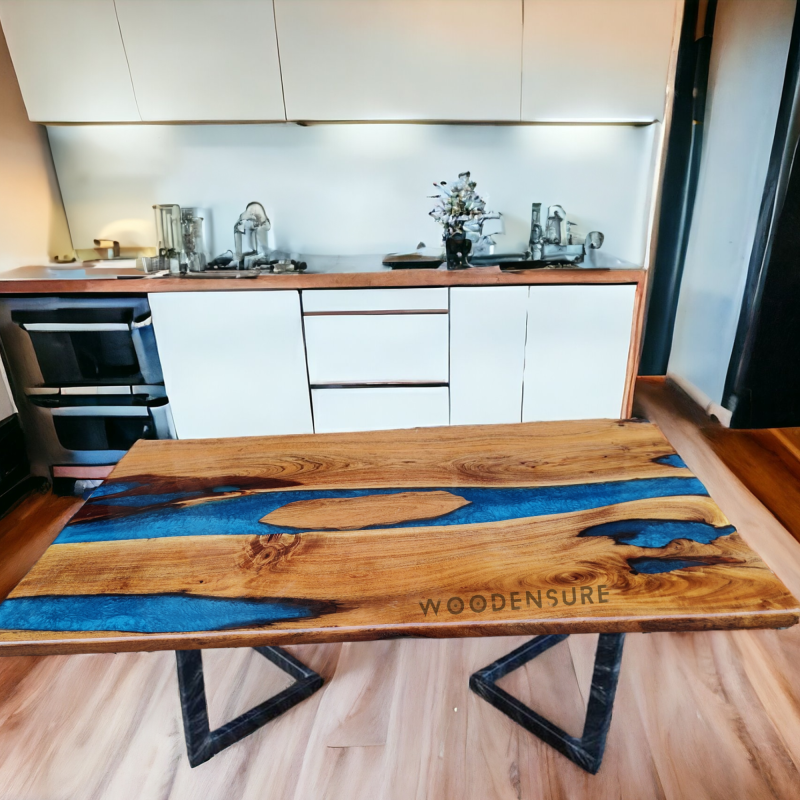 The Royal Blue Bliss Epoxy Resin Dining Table with its timeless style and rustic look, enriches the dining area of your house, which becomes the main gathering place for making memories and for years to come, a place you will always cherish.
