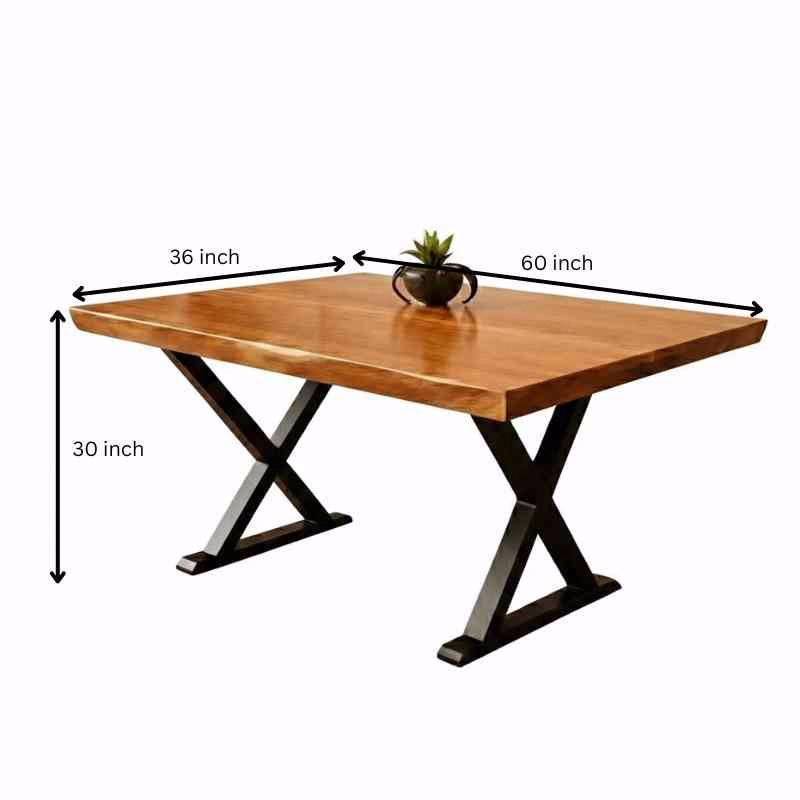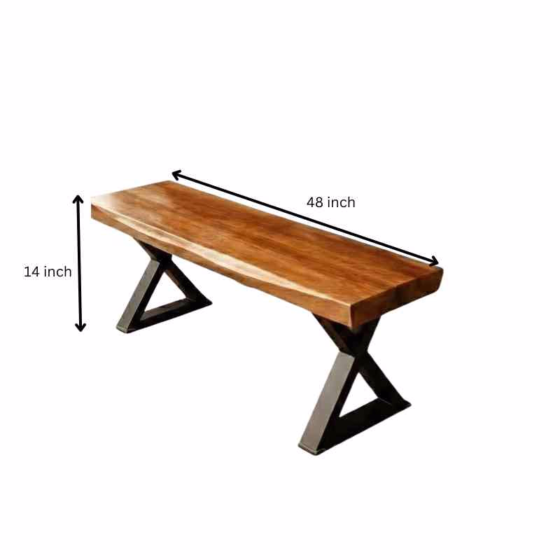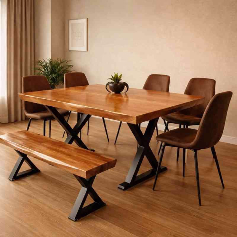 This acacia live edge dining table comes paired with a perfectly matched acacia wood dining bench, creating a cohesive and functional dining setup. The sturdy X-shaped metal legs provide excellent stability while adding a modern industrial touch. Whether used as a live edge table with bench or styled separately, this live edge dining table with bench comfortably seats four, making it ideal for family meals, casual gatherings, or everyday dining. The versatile banch table design ensures both comfort and visual balance.