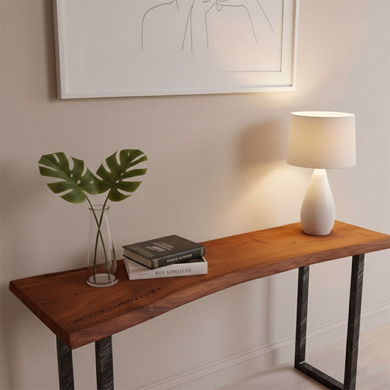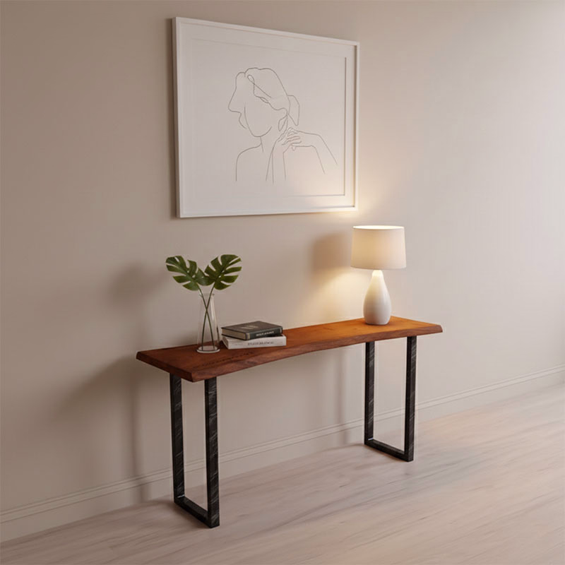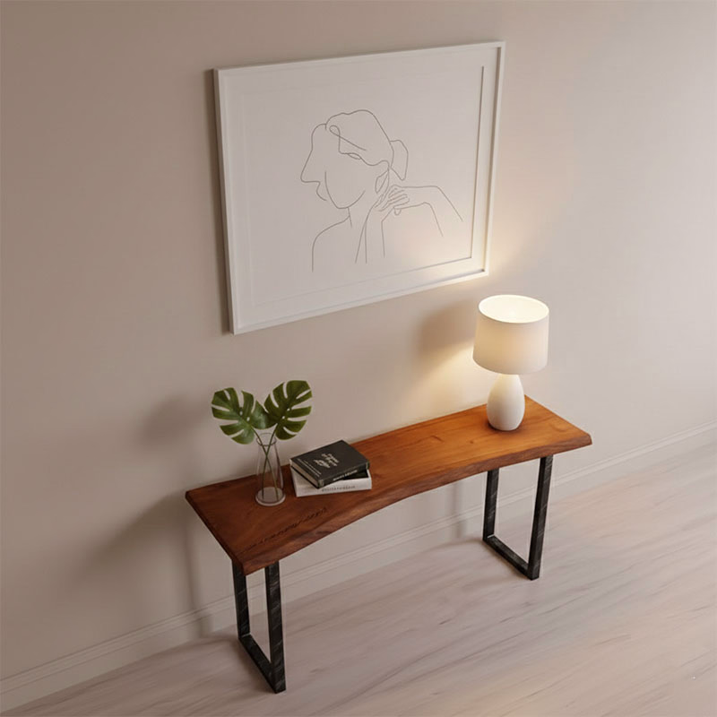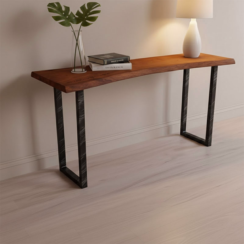 Live Edge Wood Table Top: This is its console table's gorgeous live edge oak trees are primary appeal. Each tabletop displays various grain patterns and cracks the solid wood, but they have been kept at edges.