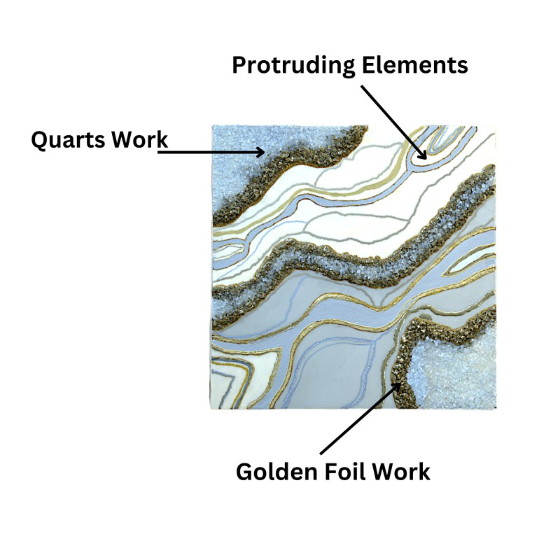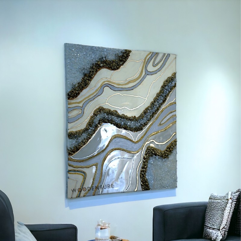 Our Gold Quartz Work Wall Art is a striking addition to any space, whether it is hung in the living room, bedroom, or office. It instantly improves the vibe in any area. It acts as a focus point, capturing attention and sparking discussion with its distinct beauty and charm.