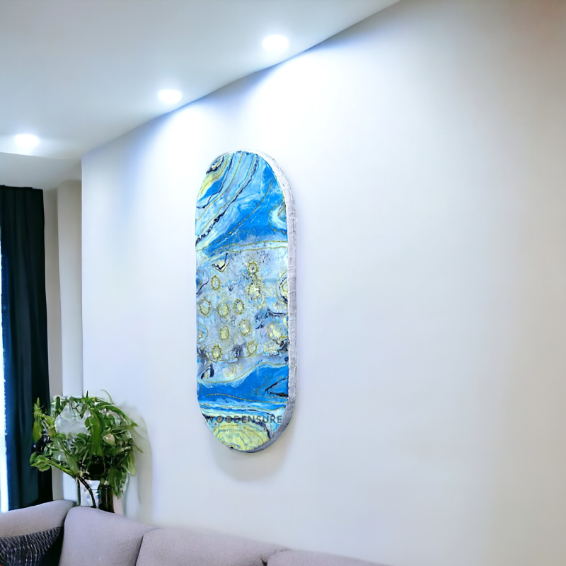 Presenting our gorgeous Blue Epoxy Resin Wall Art, a stunning addition to enhance your interior design. This artwork, which features swirling patterns and vibrant blue hues, was created with precision and imaginings and makes an ideal focal point for any space.