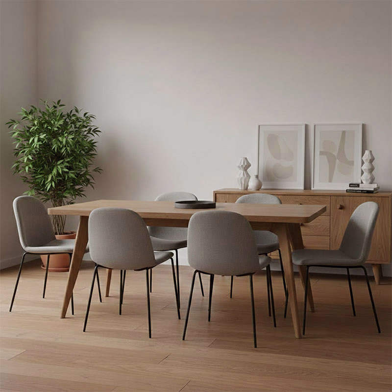 The Aero Solid Wood Dining Table is a refined blend of craftsmanship and minimalist design, created to complement both modern and classic interiors. Made entirely from 100% solid acacia wood, this rectangular table showcases warm, natural grain patterns that make every piece unique. Its clean lines and elegantly tapered legs give it a subtle mid-century modern appeal, allowing it to fit seamlessly into casual dining spaces as well as more formal settings.