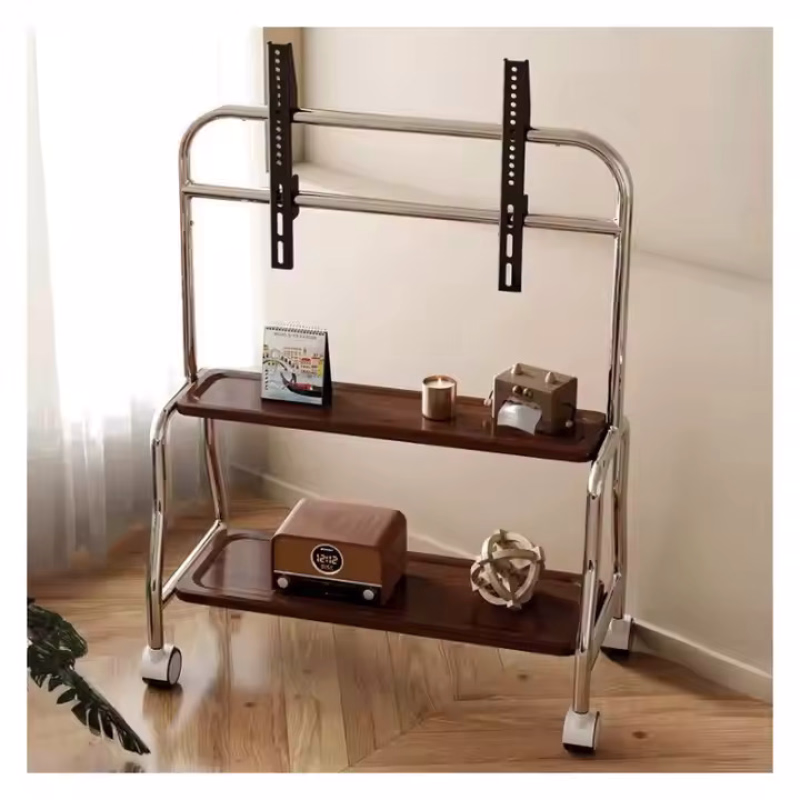 Modern Minimal Look: Sleek chrome frame and walnut-finish shelves suit contemporary interiors.