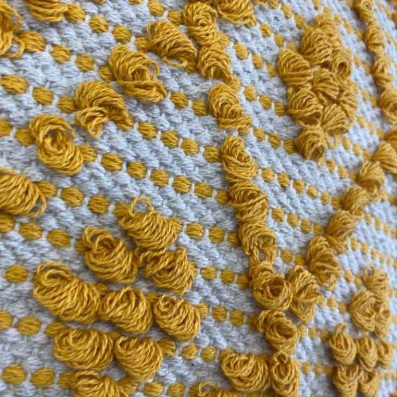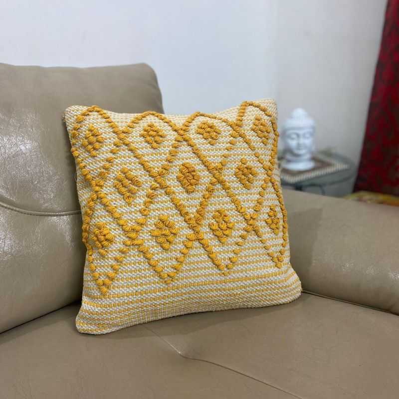 Brighten your space with the SunWeave Throw Pillow! This yellow tufted beauty boasts a geometric pattern, adding a boho flair to your living room. Soft and stylish, itโs a perfect accent!