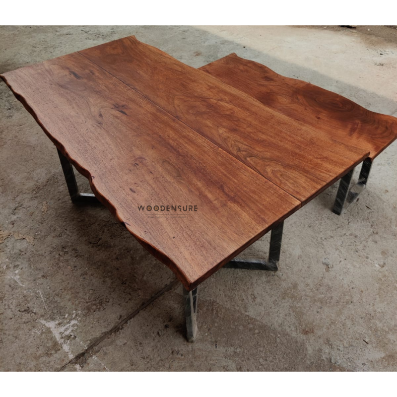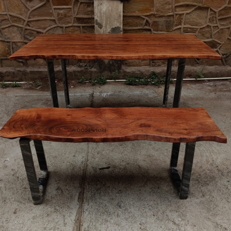 The "The Natural Edge Harvest Shedua Tone Dining Table," a work of art that is made by skilled Indian craftsmen at Woodensure, is the product of the "The Natural Edge Harvest Shedua Tone Dining Table" This 6-seater live edge dining table with the matching bench is not just a furniture; it is a piece of art that is an expression of the creativity and the natural beauty that will change your dining area.