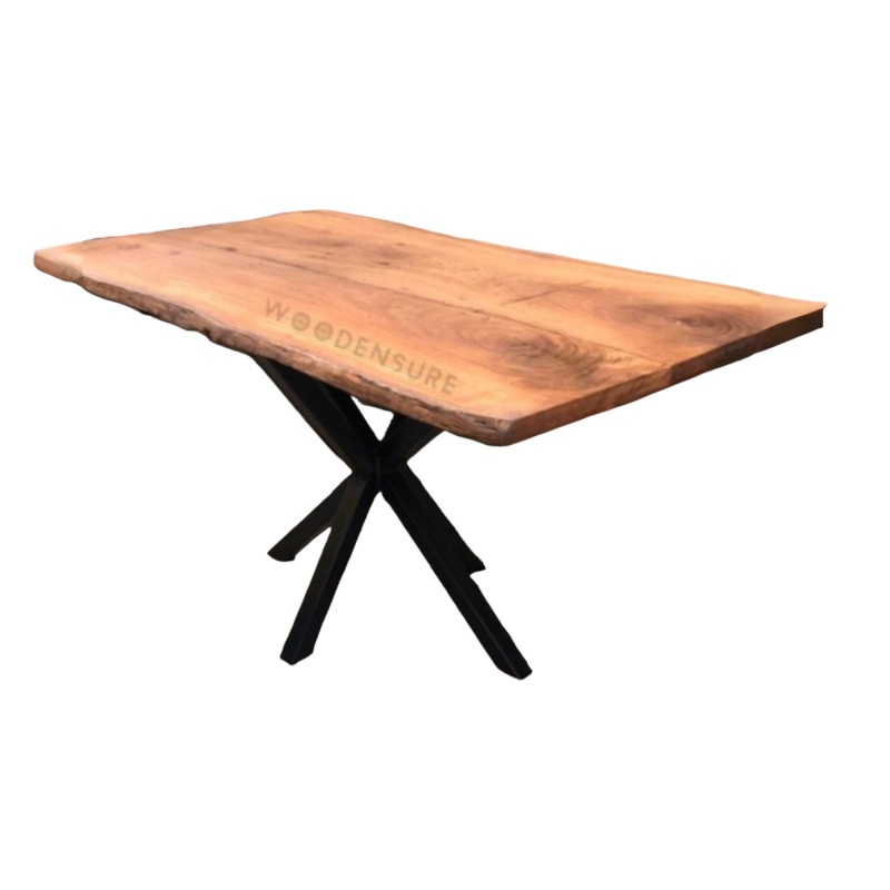 A live edge dining table is a type of table that features a natural edge or contour of the wood on at least one side, giving it a unique and organic appearance. The table is typically made from a slab of wood that has been cut along the natural growth lines of the tree, leaving the bark and natural edge intact. The slab is then planed, sanded, and finished to create a smooth, flat surface for dining.The natural beauty of the wood grain and unique shapes of live edge dining tables make them a popular choice for homeowners and interior designers looking to add a touch of nature to their dining room. They are also prized for their durability and can last for generations with proper care.