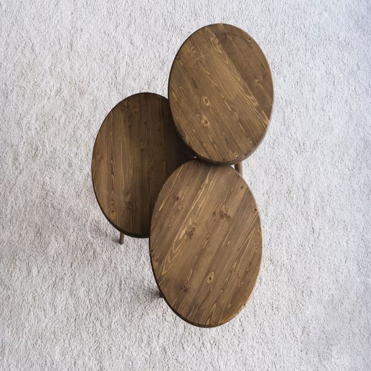 Here comes the Triune Tri-layer Round Solid Wood Nesting Table Set of 3, appearing as an ingredient that is spared by utilitarian and creative designing. Luckily exhausted Indian manufacturers with the very best solid acacia wood can do it. The goal is to provide you with pieces that can be used as side tables in your living room or can stand alone in various areas of your home.