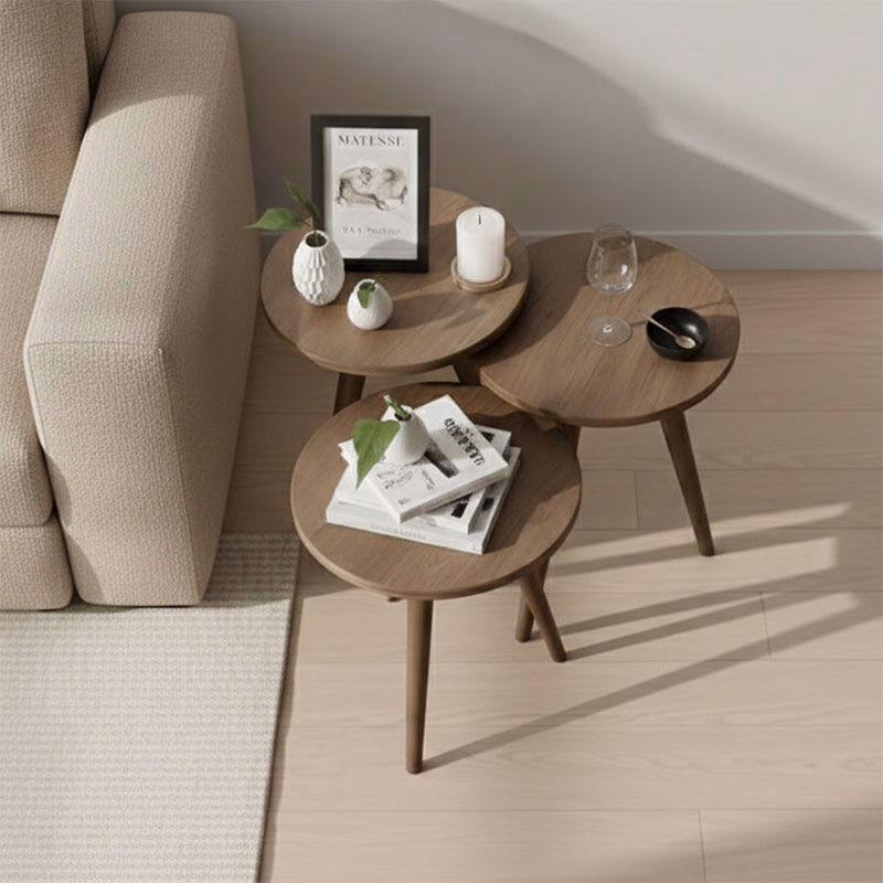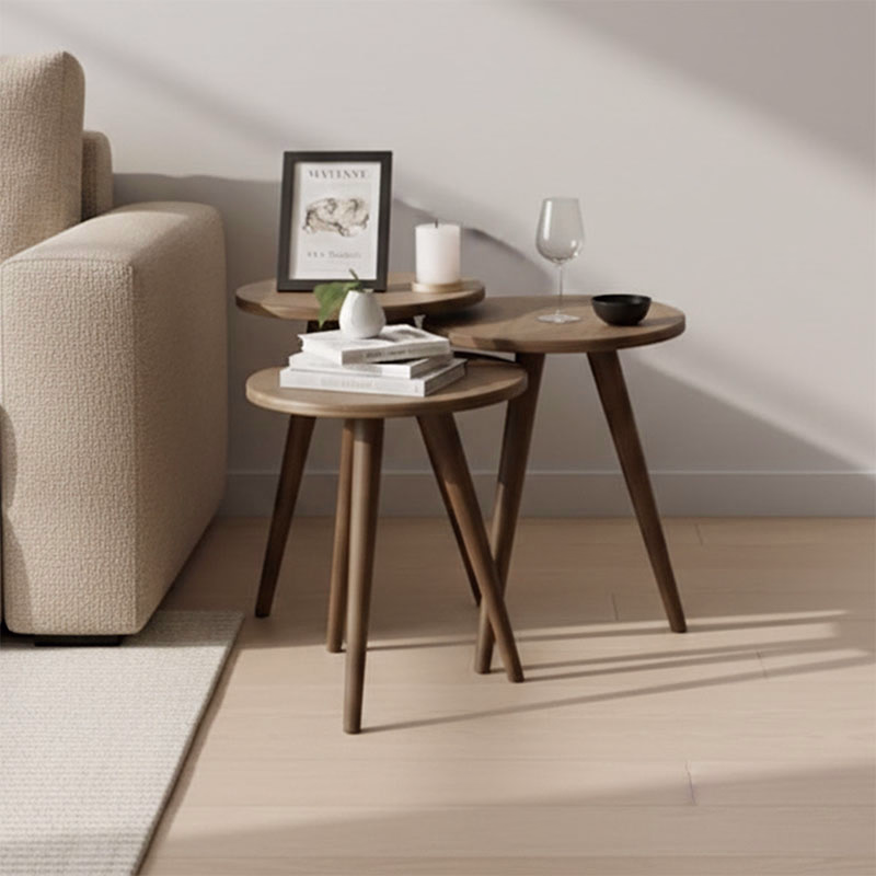 Designed with versatility in mind, the round nesting structure allows the tables to slide neatly under one another, helping you save space when needed and expand your surface area effortlessly. Whether placed together as a cohesive unit or used individually across different corners of your home, these tables adapt seamlessly to your lifestyle. Their balanced proportions and sturdy wooden legs ensure stability, making them reliable for daily use.
