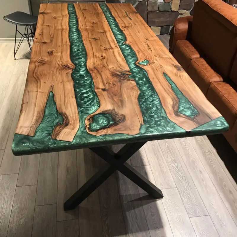 Give your space a new look with this stunning epoxy dining table featuring a modern X-shaped leg design and deep turquoise resin inlay. Made from high quality solid wood and durable epoxy, this table is the perfect combination of durability and luxury. Ideal for home, office or hotel and available in custom orders. Safe delivery in a sturdy wooden box of international standards. Stylish upgrade at an affordable price.