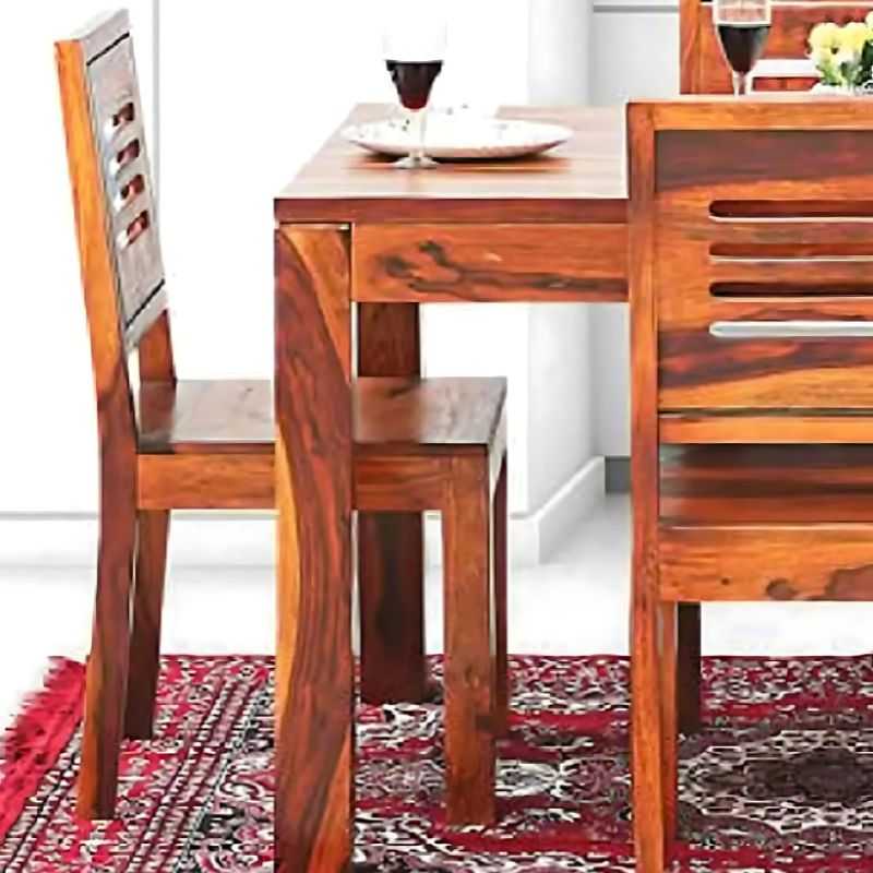 Elevate your dining with the Vespertide Dining Table Set. Crafted from solid wood, this 4-seater set offers sturdy chairs for comfort. Perfect for intimate meals in your dining room.