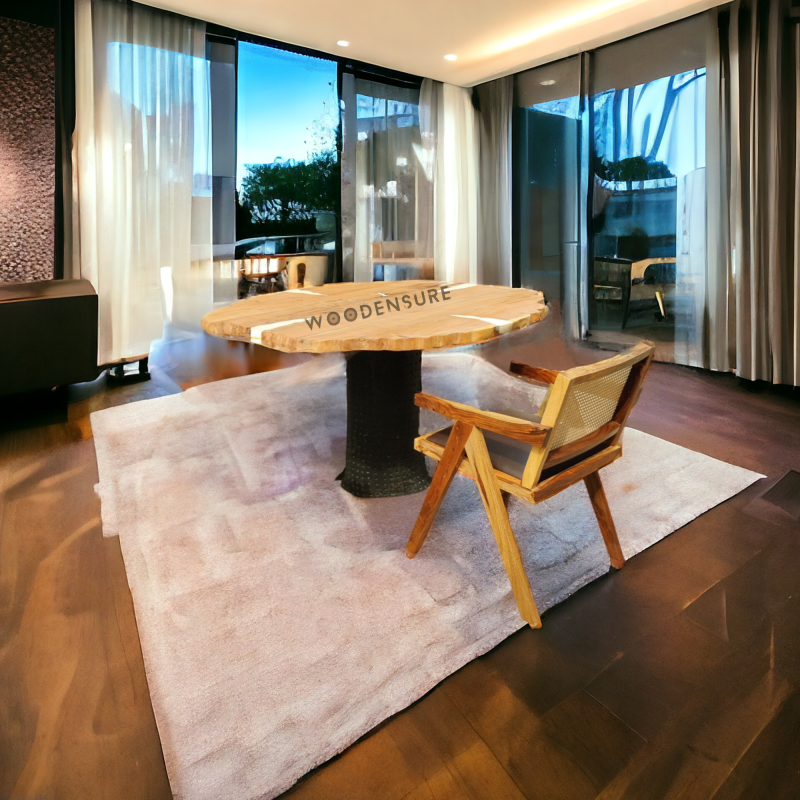 The White Round Live Edge Dining Table with Tree Trunk Base is a wonderful result of the combination of the original acacia wood and the white epoxy resin that gives the table a modern touch. Made by the hand of the Indian artisans, this table is the center of your dining area, where the fond memories are made and the families together. The dining table is made from high-quality acacia wood and is solid and long-lasting in form so that it is durable and stable. The White Round Live Edge Dining Table is a table that has a large tabletop and sturdy legs which assures that it can be used for family meals, holiday feasts, and for hosting guests and thus, the table is versatile for different dining occasions. This table is specially designed for comfort, and at the same time, it provides cozy seating for family and friends, whether you are using it with a chair or a bench, thus, it creates a warm and inviting atmosphere.