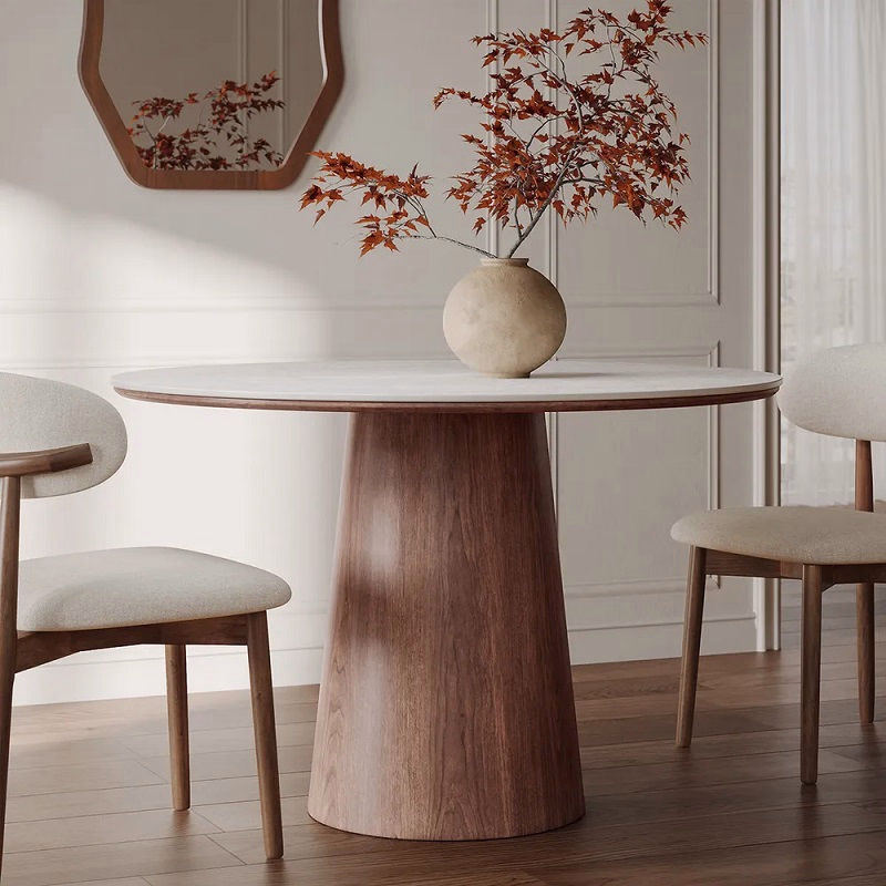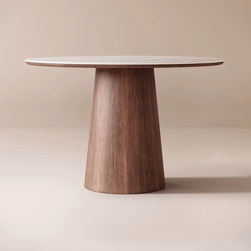 Elevate your dining area with the Luna Round Dining Table, a refined balance of natural stone and solid wood. Designed with a white sandstone top, this piece showcases the timeless beauty of natural textures, while the mango wood cone-shaped pedestal base adds warmth and stability. Its sculptural form and neutral tones make it a versatile addition to modern, contemporary, or Scandinavian-inspired interiors.