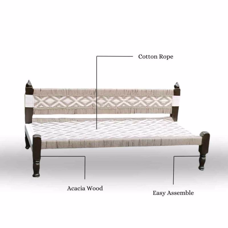 This wooden charpai is handcrafted from solid acacia wood and natural jute, offering superior durability, comfort, and authentic Indian craftsmanship.