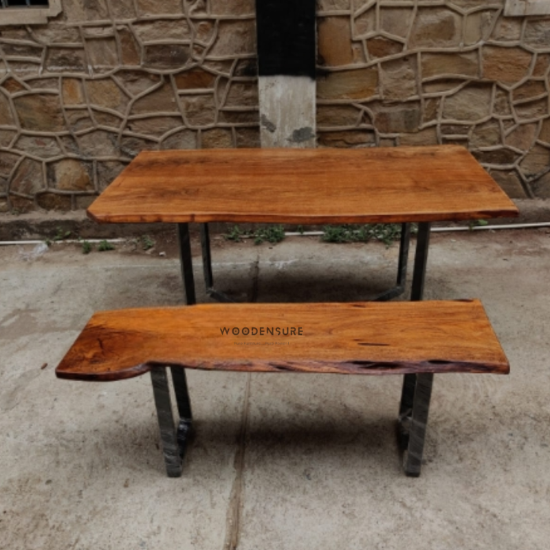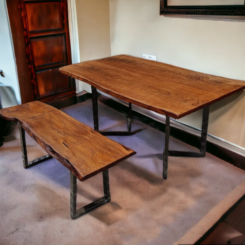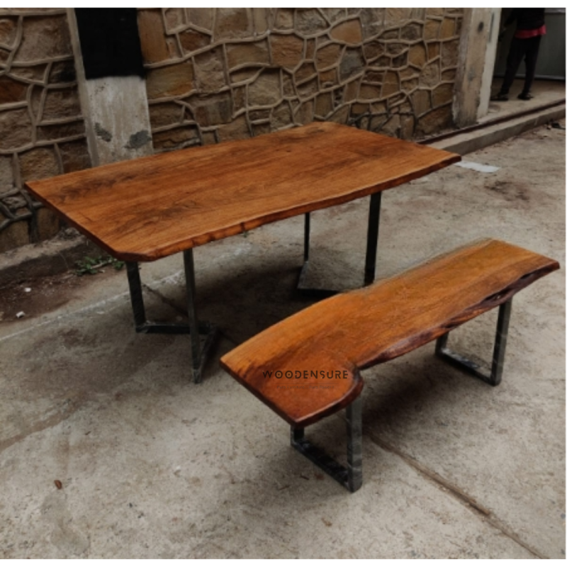 Bubinga Tone Live Dining Table With Bench solid Wood Dining Table