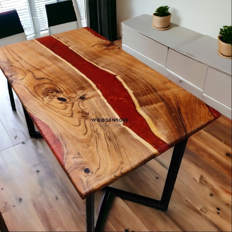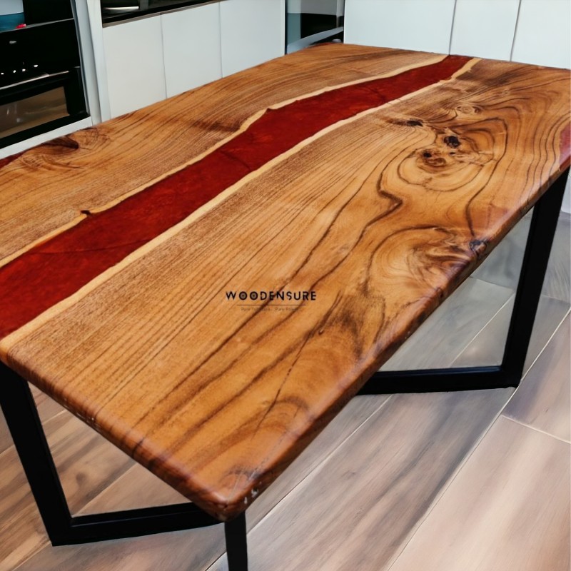 The "Enchanted Maharun Epoxy Resin " Acacia Wood Dining Table showcases the unique grain patterns and rich hues  infusing a touch of mystery and allure into your dining space. The deep, warm tones of the wood create a sense of sophistication and natural beauty.
