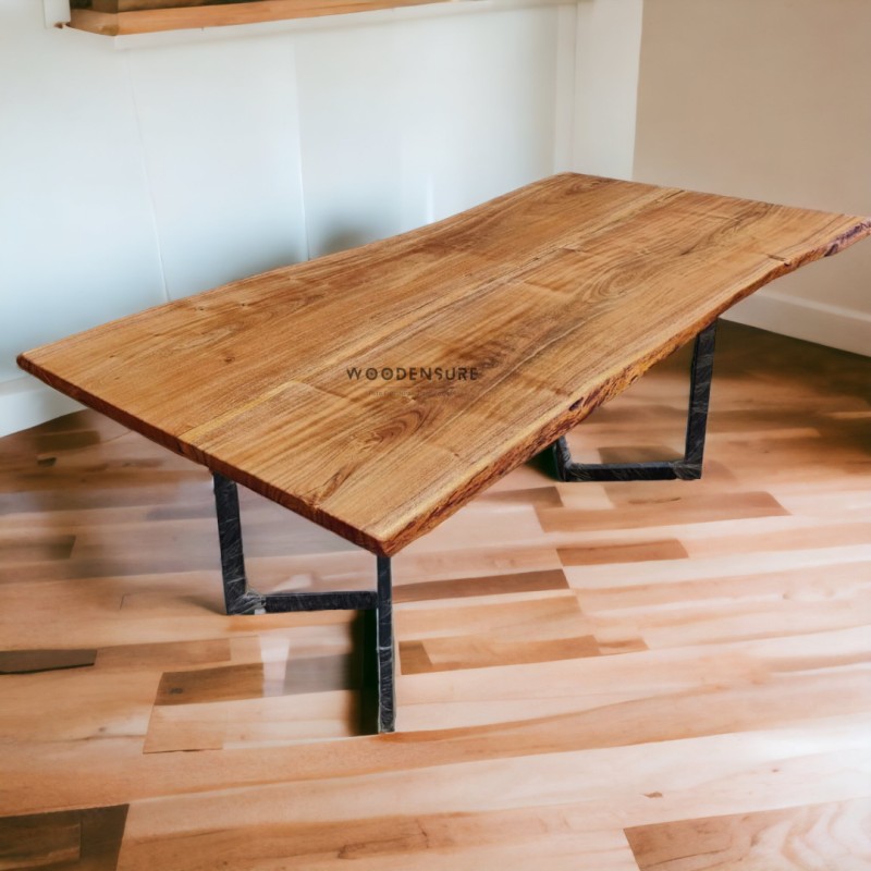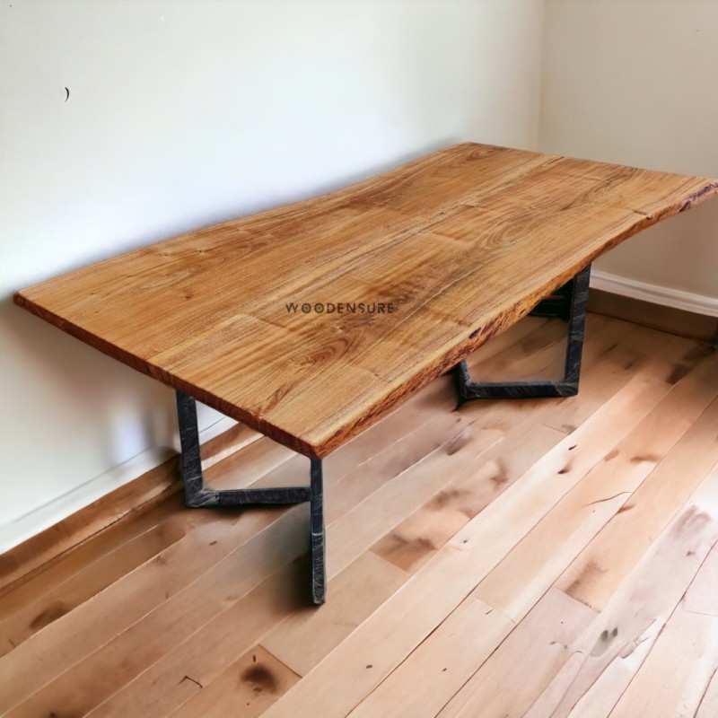 The Woodensure Forest Feast Solid Wood Dining Table is a modifiable and long-lasting piece that can be used in your home. Its special live edge style and the natural gorgeousness of the acacia wood make it the ideal option for those who want to mix the modern technology with the timeless design. The table is not only a piece of furniture but also a piece of art that improves the dining room ambiance.