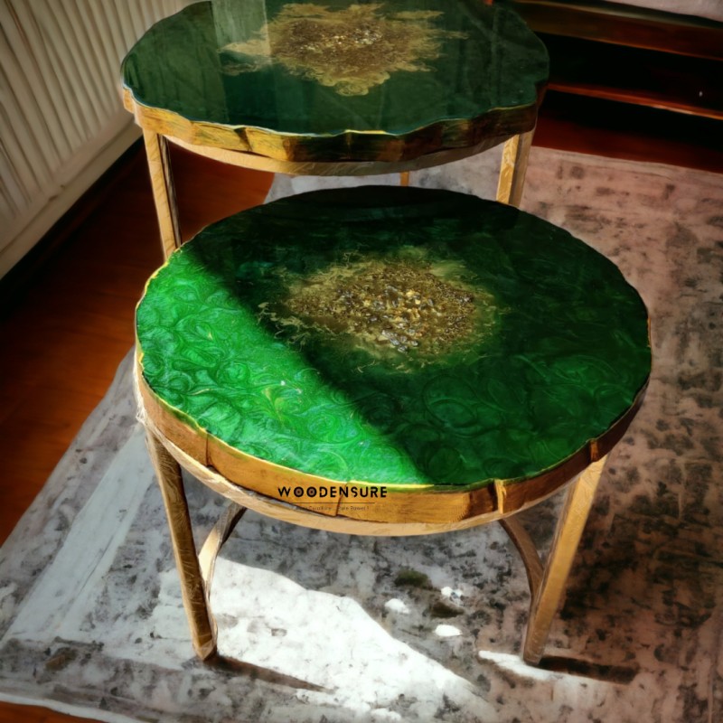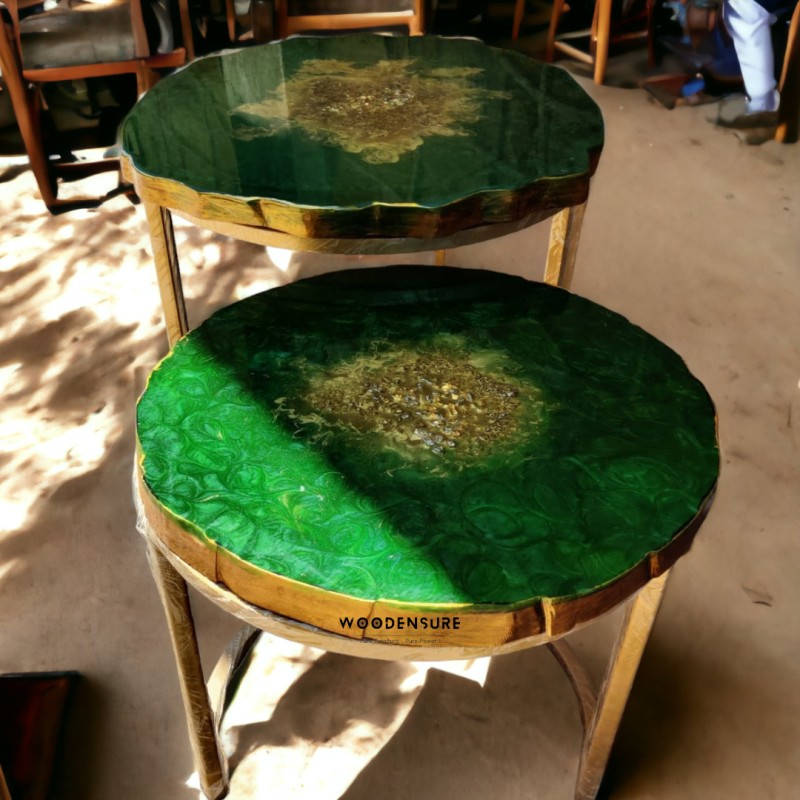 The Woodensure Gold Green Epoxy Resin Nesting Table would be such more than just a piece of furniture; a case in point is an art and a modern design. This table is not only used for coffee or displaying your charming decoration but also it adds to the atmospheric feeling of your home.