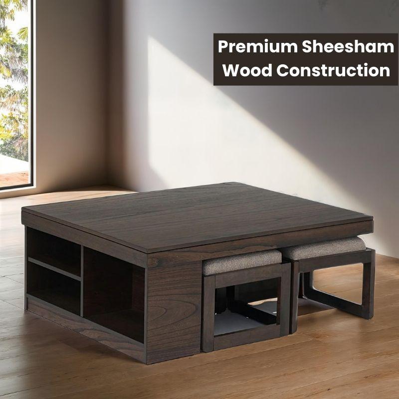 Introducing the Woodensure Nestin Coffee & Center Table Set, a smart, space-saving furniture solution for stylish urban living. Carved from sustainably sourced Sheesham wood, this luxury coffee table blends contemporary style with traditional craftsmanship.