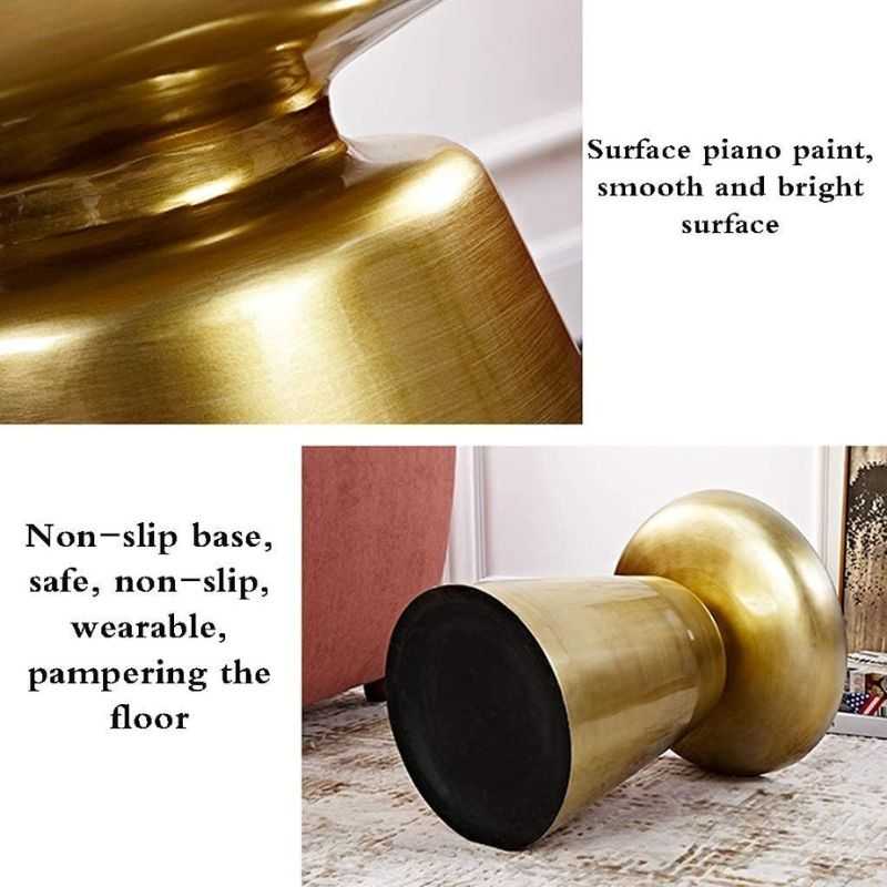 With its compact and sturdy construction, this modern side table offers a chic surface for books or decor. It combines functionality with a bold aesthetic. The gold finish enhances its contemporary appeal, making it a standout in your living room or bedroom.